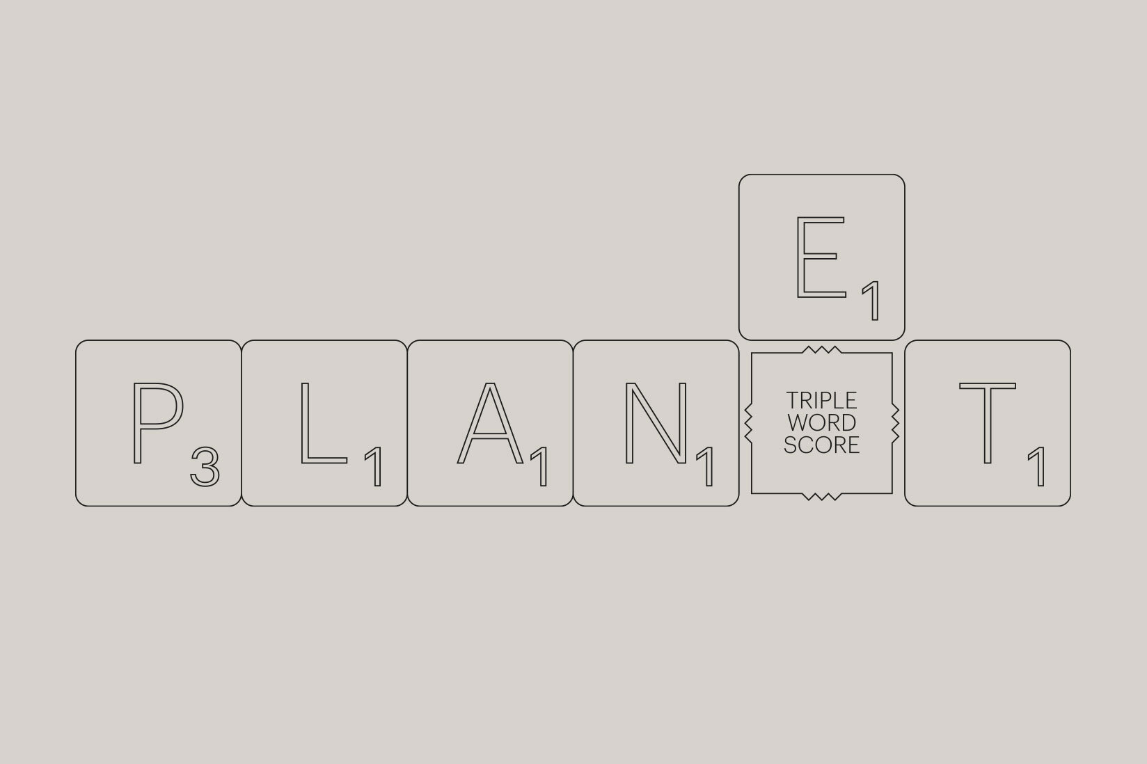 Now, in terms of Scrabble, that could mean with just one extra letter possibly reaching that elusive triple word score. Let us consider three bonus points when we engage in a planet-based diet, an extra “E” for environment, energy and existence. To be a good designer you have to have the talent to see the beauty in mistakes and this is one of my best so far.